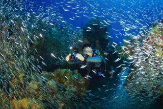 Over a dozen popular dive sites are found in the West Caicos Marine National Park, including many of the sheerest wall dive sites in the Turks and Caicos. The drop-off at these sites is quite impressive, with 45-foot (14 m) depths falling away into the thousands. Scuba diving companies on Providenciales and the country's liveaboards, such as the Turks and Caicos Aggressor II, frequently organize dive trips to this park.